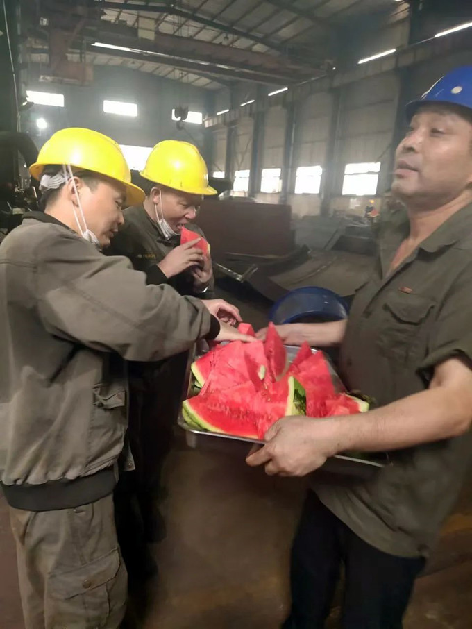 在每日送綠豆稀飯、西瓜的過程中,還分發(fā)藿香正氣液、藿香正氣丸等防暑藥品,行政處工作人員叮囑一線員工特別是焊工等高溫下作業(yè)的人員一定要注意防暑降溫,合理安排工作和休息,做到勞逸結(jié)合。同時溫馨提醒各位車間主任在管理工作中高度重視高溫天氣下的防暑降溫、安全生產(chǎn)工作,確保生產(chǎn)的安全順利進(jìn)行,確保員工安全、健康、清涼地度過夏季生產(chǎn)旺季。