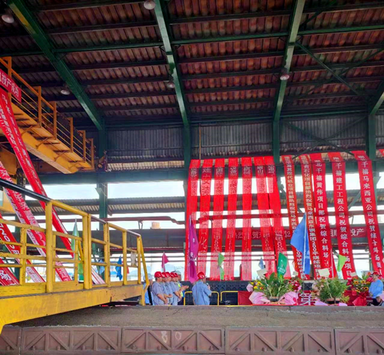 8月22日(農(nóng)歷七月初七),由中冶京誠(chéng)提供項(xiàng)目總包的“馬來(lái)西亞?wèn)|鋼集團(tuán)200㎡燒結(jié)項(xiàng)目開(kāi)機(jī)投產(chǎn)慶典”在東鋼燒結(jié)機(jī)現(xiàn)場(chǎng)隆重舉行,馬來(lái)西亞?wèn)|鋼領(lǐng)導(dǎo)和中冶京誠(chéng)領(lǐng)導(dǎo)分別致辭。這也預(yù)示著本項(xiàng)目由湘潭冶金設(shè)計(jì)、制造的圓筒混料機(jī)(一混、二混)正式進(jìn)入生產(chǎn)階段,為公司在國(guó)際項(xiàng)目版圖上又添上濃墨重彩的一筆!