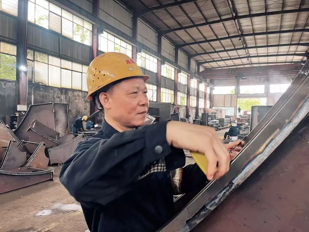 楊襲曾是泰富重工的“一周一打卡”自由職業(yè)者。在行業(yè)寒冬的沖擊下,泰富為了降低成本,不得不采取靈活的用工模式,楊襲在外出尋找工作的過程中,機(jī)緣巧合之下,最終加入了湘冶。盡管他的身份是勞務(wù)關(guān)系,但這從未限制他的擔(dān)當(dāng)。他憑借精湛的鉚焊技術(shù),成立了這個(gè)充滿活力的班組。在越南滾軸篩項(xiàng)目中,楊襲憑借其過硬的鉚焊技術(shù),解決了精密焊接中的難題,通過精準(zhǔn)的電流參數(shù)設(shè)置和獨(dú)特的鉚焊手法,確保了鉚焊質(zhì)量,為項(xiàng)目的順利交付立下汗馬功勞。他不僅技術(shù)過硬,而且工作態(tài)度認(rèn)真負(fù)責(zé),為班組奠定了堅(jiān)實(shí)的基礎(chǔ)。盡管他并非全職員工,但他對(duì)工作的投入和專注,讓他在車間里贏得了極高的聲譽(yù)。他深知,只有以身作則,才能帶領(lǐng)班組走向成功。他用自己的行動(dòng)詮釋著什么是敬業(yè)精神,什么是團(tuán)隊(duì)的凝聚力。
